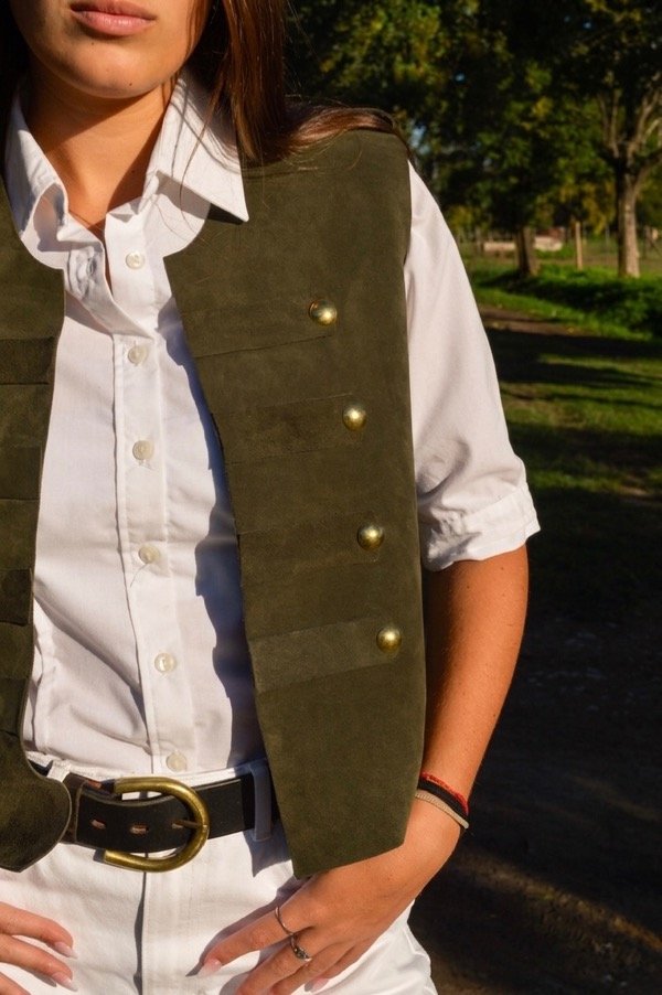 Chaleco de cuero vacuno 100% argentino, hecho a mano con técnicas artesanales.